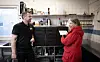 Jonas Welander på Björntjänster, som har restauranverksamheten på Röda korsgården, säger att husmanskost går hem bäst. <\n>Arla Ljungqvist-Petersson har fått beställningslistan och gör sig klar för att köra ut matbeställningarna. Foto: Daniel Eriksso