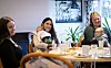 Att sitta runt ett bord och diskutera, fika och ha det trevligt tycker Alma Himberg, Noora Löfström och Ida Snellman är jättetrevligt.Foto: Daniel Eriksso