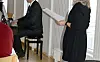 Kantor Christian Juslin vid pianot och diakon Maria Sjölund höll i allsången.Foto: Nina Eriksso