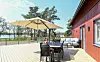 Lina Pellas har tagit plats under parasollet på den stora terrassen.@Normal_indrag:<@Fotograf>Moein EhghiFoto: Moein Eshghi