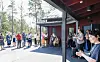 Ella Söderlund och Alva Idman klipper bandet medan lantrådet Katrin@Normal_indrag:<@Fotograf>Moein Ehghi<@Normal> Sjögren håller i bandet.Foto: Moein Eshghi