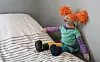 En handgjort Pippi Långstrump sitter på en av sängarna.@Normal_indrag:<@Fotograf>Moein EhghiFoto: Moein Eshghi