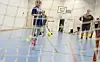 Edit Gulbrandsen i mål kastar ut bollen. I bakgrunden står Ylva Gulbrandsen och Tindra Lampén.@Normal_indrag:<@Fotograf>Robert JanssonFoto: Robert Jansson
