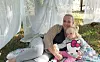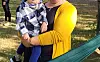 Alvar Solin tycker att det är roligt att sitta i hängmattan och vill att pappa Tobias Lindström ska gunga mera.@Normal_indrag:<@Fotograf>Nina ErikssonFoto: Nina Eriksson