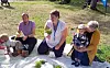 Jenni Sundling, från Folkhälsan på Åland, sitter i mitten. Bredvid sitter Alvar Solin med pappa Tobias Lindström samt Julius Friberg med mamma Marlene Friberg.@Normal_indrag:<@Fotograf>Nina ErikssonFoto: Nina Eriksson