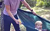 Lova Rosenberg i mamma Ellen Rosenbergs fam testar på att sitta i hängmattan.@Normal_indrag:<@Fotograf>Nina ErikssonFoto: Nina Eriksson