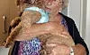Hunden Hannibal i famnen på sin goda vän Ros-Marie Rosén var också med på kalaset.<@Fotograf>Nina ErikssonFoto: Nina Eriksson