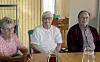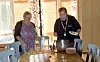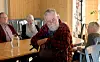 Bertel Erickson har aldrig ätit släpärter tidigare och väntar med spänning på att få smaka. Bakom sitter Tor Sundström, Valdis Fagerholm och Elna Vickström.<@Fotograf>Nina ErikssonFoto: Nina Eriksson