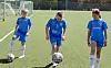 Noah Fagerholm, Jon Karlsson och Aada Saarijärvi gillar att spela fotboll.@Normal_indrag:<@Fotograf>Nina ErikssonFoto: Nina Eriksson