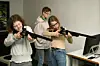 Felicia Rosberg och Li Weckamn har fullt fokus på skyttet. Corinne Fredrickson väntar på sin tur.