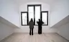 Fredrik Lundberg och Magnus Andersson visar runt i kök- och allrummet i en av Tornhusets treor.Foto: Robert Jansson