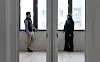 Heidi Eklund fascineras över hur ljuset spelar på de olika vinklarna i de välvda taken. I bakgrunden Magnus Andersson.Foto: Robert Jansson