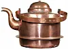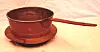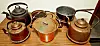 Liten koppargryta med fläns för nedfällning av grytan i vedspisens hällringar. Utbjuden på en loppisbod i Föglö för 5 euro. (Foto: Monica Jansson)
