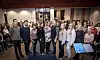 Åtta solister och fyra dansare är klara för projektet. Från vänster Niklas Troberg, Jimmy Borg, Anna Lind-Bengtsson, Caroline Furbacken, Andrea Mattsson, Walle Wahlsten, Lina Strand, Bianca Enroos och Aina Andersson. På bilden saknas Leonarde Brändström, Tilde Polviander och Olivia Polviander.