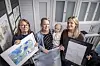 Tiina, Catja med Lise Barck-Lönnqvist i famnen, och Bianca Barck med några av de verk de visar på Galleriet.