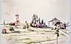 Albumets första blad pryds av Victor Westerholmsakvarell med motiv från Öhbergska backen med Observatorietornetoch Navigationsskolan. Foto: Hülya Tokur-Ehres