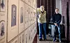 Etnolog Conny Andersson och överintendent Graham Robins framför väggen med de 90 porträtten i familjen Öhbergs album.Foto: Hülya Tokur-Ehres
