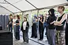Publiken letar sig så småningom till dansgolvet inne i kupolen när spelningen sätter i gång.