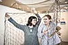 Med hjälp av fiskenät har sommarkonstnärerna Maria-Louisa Pfeifer och Selina Svarce skapat ett eget kustrum med konstverk på stadsbiblioteket.