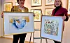 Gunilla G. Nordlund och Marlene Lindbäck låter färg och form få spelrum på sin gemensamma utställning på Jomala bibliotek.Foto: