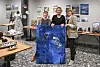 Textillärare Nina Lindqvist-Westerholm, konstlärare Lin Simons och rektor Catharina von Schoultz med Malin Oscarius målning.