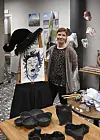 Textillärare Nina Lindqvist-Westerholm med en färgkoordinerad ensemble.
