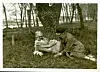 Två eleganta damer i gräset på Lilla holmen i Mariehamn. Foto: Kjell Ekströms digitala arkiv/Fallströms samling)