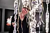 Matilda Karlström har använt sig av bland annat tidningspapper och galgar i den här hängande mobilen.