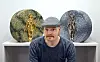 Konstnären Ville Heimala omgiven av sin Skogsmoder och Vattenmoder som visas på Galleriet under oktober. Foto: Robert Jansson