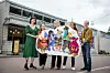 Ålands museums nya maskotar ska bidra till att förena museets olika enheter och locka till besök av barn. Från vänster: konstnären Amanda Chanfreau, Alma Karlsson, intendent från Kastelholms slott, Anna Eriksson från Bomarsunds besökscentrum, Susanne Procopé Ilmonen, överintendent på Ålands konstmuseum samt Graham Robins, överintendent vid Ålands kulturhistoriska museum.