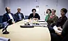 ÅHS-styrelsen har diskuterat situationen med Diktamen Oy, men något beslut fattas inte förrän nästa vecka. Från vänster styrelsemedlemmen Anders Ekström (Lib), styrelsens vice ordförande Robert Mansén (C) och ordförande Sara Kemetter (S) samt från ledningen förvaltningsöverläkare Jaana Lignell, hälso- och sjukvårdsdirektör Jeanette Pajunen samt ekonomichef Ulrika Österlund.
