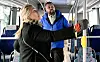 I februari 2023 besiktar eldsjälen Monica von Frenckell ambulansbussen tillsammans med Bosse Karlsson före den byggdes om.Foto: Robert Jansso