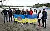 Från vänster: Stanislav Bun, Roman Mamets, Serhii Talda, Olena Talda, Olexander Solobchuk, Andrii Golovashehenko, Natalia Golovashehenko, Viktor Tsiluiko, Serhii Nebylytsia, Natalia Solobchuk, tolken Ganna Solomko och Ievgen Danylchuk.<@Fotograf>Daniel ErikssonFoto: DANIEL ERIKSSON