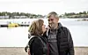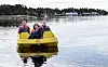 Serhii Nebylytsia, Natalia Golovaschehenko och Andrii Golovaschehenko njuter av lugnet och tystnaden i Käringsund, Eckerö.<@Fotograf>Daniel ErikssonFoto: DANIEL ERIKSSON