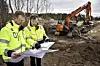 Andreas Nyberg och Christian Nordas ser över ritningarna för den nya vattenledningen.