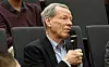 Elever i årskurserna två och tre på Ålands lyceum finns bland åhörarna under presentationen.Foto: Robert Jansson