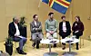 Moderatorn Claes Elfsberg intervjuar professor Johan Sundström och postdoktor Nicolas Pielawski från Anders Wiklöf-institutet för hjärtforskning, ställföreträdande vice rektor Eva Tiensuu Janson samt Sigrid Welin som läser apotekarprogrammet vid Uppsala Universitet.Foto: Robert Jansson