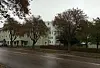 På innergården från Ålandsvägen finns en ledig tomt som här har illustrationen av den byggnad Markus Fellman föreställt sig på platsen. Bilden är hämtad ur hans handlingar till staden.