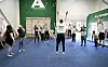 Mycket energi under uppvärmningen för dagens avslutsträning.Foto: Robert Jansson