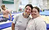 Här hjälper Ingrid Holmström modiga Magdalena Lindström över balansgången.Foto: Robert Jansson