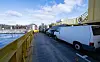 Kristian Lundström höll sig i bilen under färden. Där trivdes han alldeles utmärkt och han tyckte att det var viktigare med att asfaltera om Godbyvägen före att ha någon större färja på linjen. Foto: DANIEL ERIKSSON