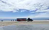 Ett traktorflak för besökarna genom sanden. Foto:
