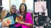Haddon Sundbloms barnbarn Karin Zawaski och Meredith Zawacki med några böcker av Föglöättlingens samlade verk.