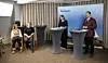 Från vänster Sanna Roos och Mina Rosenqvist från ÅSUB, specialsakkunnig i jämställdhet Kristin Mattsson och jämställdhetsminister Arsim Zekaj.