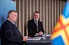 Finansminister Mats Perämaa (Lib) och finanschef Conny Nyholm presenterade vårbudgeten i dag.