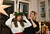 Luciakronan ska sitta bra. Lucia Sofia Eriksson får hjälp av Alexandra Walk-Liljeroos.