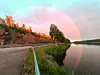 Den röda regnbågen fångades på bild över Långträsk.