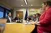 Från externa målansvariga till landskapets egna målsansvariga. Nu är det ministrarna som ansvarar för hållbarhetsagendans strategiska mål. Från vänster närings- och miljöminister Jesper Josefsson (C), infrastruktur- och klimatminister Camilla Gunell (S), lantråd Katrin Sjögren (Lib), social- och hälsovårdsminister Arsim Zekaj (S), utbildningsminister och vice lantråd Annika Hambrudd (C), finansminister Mats Perämaa (Lib) och civilminister Ingrid Zetterman (Lib).