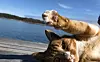 108. Vår Abbe som trivs som en fisk i vattnet i våra hemtrakters vackra by.Eva och Göte samt hunden FreddyFoto: