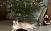 115. Det här är syskonen Doris och Nixon som vilar framför lillajulsgranen i väntan på den stora.Vi får se hur husse Max ska klara av att säkra granen från deras bus.Max Nedergård Foto: